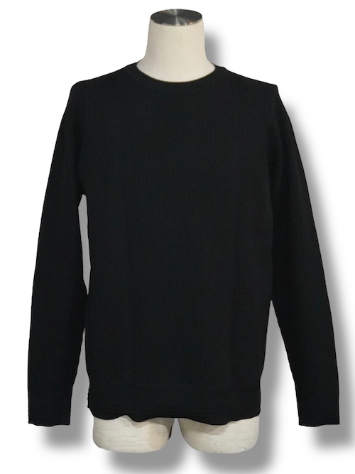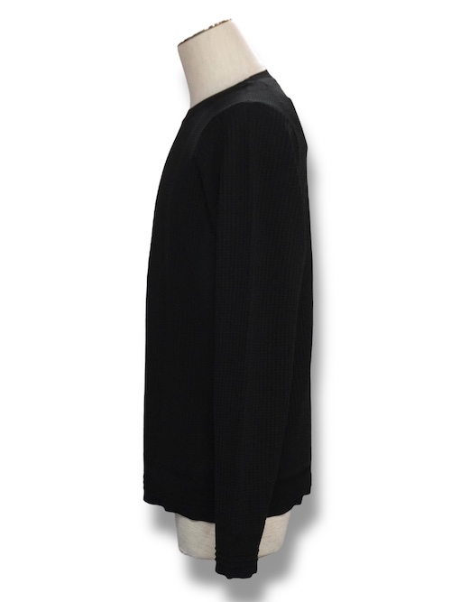 【軽量/ハイストレッチ】サーマル ワッフル 長袖ニット ブラック 5351POUR LES HOMMES 5351プール・オム